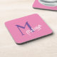 Add a personalized touch to your table with this stylish hard plastic coaster, featuring a soft pink background, bold purple monogram initial, and a white custom name. The cork backing protects surfaces while adding a natural finish — perfect for everyday use or thoughtful gifting.