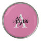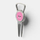 This Pink Monogram Script Divot Tool Bottle Opener with Marker features a name and initial that are easy to personalize in the online personalization template before ordering the divot tool. This pretty design features a distinctive pink/black/white colorway to help with visibility on the course.