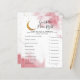 Cute over the moon theme baby shower "the price is right" game card featuring faux gold crescent moon with pink watercolor background. The texts are editable. Perfect game to play during the shower. It lists baby essentials and asks guests to guess the price. Whoever guesses the price the closest wins!