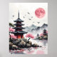 Pink Moon over Pagoda Poster