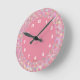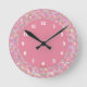 Pretty pink and multi colored mosaic pattern surrounds the center of this wall clock. IN the middle, rose pink with white numerals.