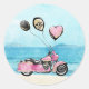 Pink Motorcycle on Beach Wedding Sticker