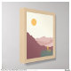 Boho abstract landscape with a full moon and pink mountains poster; a modern mid-century print with a beautiful small deer napping under grass.
