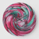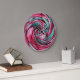 gorgeous shades of PINKS and TEAL/AQUA on this wall clock. if you look close it resembles a Dolphin swirling on the bottom and bird ? eagle.. parrot ? on the top swirl.