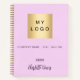 Pink background. Personalize and add your business logo, text, year and name. Your name is written with a modern hand lettered style script. Purple letters.