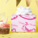 Birthday wrapping paper in pink rocking horse art design. Personalize this third birthday paper with your own choice of name. Currently reads Happy 3rd Birthday Chloe. Perfect for wrapping a special first birthday gift. Uniquely painted in watercolor and designed by Sarah Trett.