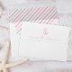 Complete your baby shower mailing with these elegant nautical envelopes featuring a soft pink watercolor anchor adorned with a floral bloom. Perfectly suited for girl baby showers with a beachy or coastal theme, these envelopes offer a polished, coordinated look when paired with matching invitations. Add your return address for a personalized, professional touch.