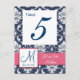 Pink Navy Blue Damask Wedding Table Number