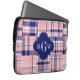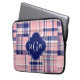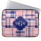 Pink, Navy Blue Preppy Patchwork Madras Monogram Laptop Sleeve