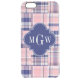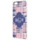 Pink, Navy Blue Preppy Patchwork Madras Monogram Uncommon iPhone Case