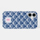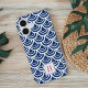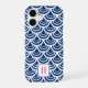 Chic patterned case features a cobalt blue and white fish scale pattern. Personalize with your single initial monogram in vibrant fuchsia pink for a unique custom touch.
