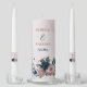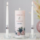 Unique wedding unity candle set featuring romantic pink and navy flowers and green leaves