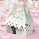 Romantic beautiful pink and navy blue flowers with green leaves botanical wedding favor box.