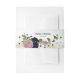 Romantic beautiful pink and navy blue flowers with green leaves botanical wedding invitation belly band.