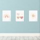 Add a finishing touch to your little one's space with this set of 3 watercolor rainbow, hearts, and sun prints.