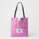 Unique medical-themed designer bag featuring creative pink hospital scrubs. To personalize edit text to add name.