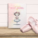 A cute ballerina on the cover of this pink notebook will delight a girl who loves ballet. The notebook is for a young dancer to journal her progress and can be personalized with their name.