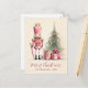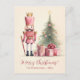 Our pink Nutcracker is adorable. He is so cute! Here he is in a Christmas Eve scene complete with decorated holiday tree and matching gifts, too. The scene is from a vintage watercolor design.