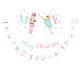 Cute pink teal pastel watercolor nutcracker ballet toys and candy merry Christmas bunting banner flags.