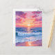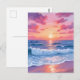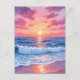 Pink Ocean Waves Sunset Watercolor Postcard