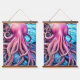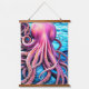 Pink Octopus Blue Ocean Wave Background Hanging Tapestry