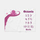 A milestone blanket to show your baby’s months of progress. The design is pink and magenta purple and shows a little octopus being held up by a big octopus. The baby name can be customized.