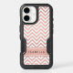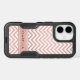 Protect your cell phone in style with this chic modern Otterbox Apple iPhone Case. Cover design features a pretty pink faux rose gold foil chevron zig-zag pattern and stripe, and your name or other customized text in a simple black typography font. This elegant and trendy phone case makes a stylish gift for her.