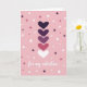 This Valentine's Day card shows five hearts stacked in a straight vertical line down the center on a soft pink background. The top heart is a very dark blue, and the colors shift down through purple and light mauve into rosy pink, ending with a white heart at the bottom. Small five-point stars are scattered around the hearts, in white, soft pink, and dark blue, in a mix of sizes. The overall look feels calm and sweet, like a quiet note of love. At the bottom, the card says “for my valentine” in thin, flowing letters. The text sits near the lower edge and stands out gently against the pink background. It’s a simple, romantic design that works for a partner or someone you care about 💘❤️.