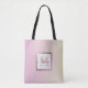 This modern girly tote bag features a rose gold monogram and name in a marble frame on a pink-vanilla gradient background.