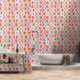 Check out this design featuring a pink, orange and blue geometric pattern.