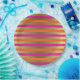 Paper plates with an elegant pattern composed of pink, orange and faux gold metallic horizontal stripes.