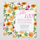 Pink Orange Floral Elegant Script 100th Birthday Invitation
