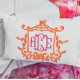 Pink Orange Pagoda Flower Frame Monogram Initials Lumbar Pillow