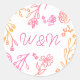 Pink Orange Simple Floral Script Monogram Classic Round Sticker