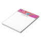 A notepad with a cool trippy psychedelic design. Pink, orange and hints of blue all swirling around. Retro hippie vibe.