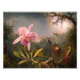 Pink Orchid and Three Hummingbirds print. Oil on mahogany panel from 1871. Martin Johnson Heade was an American landscape and naturalist painter who frequently depicted birds and flowers. Orchids and hummingbirds were some of his favorite subjects, and this painting stands as one of his most beautiful. Cattleya Orchid and Three Humingbirds depicts a Cattleya orchid surrounded by two Brazilian amethysts hummingbirds and a red-tailed Sappho Comet hummingbird in the midst of a jungle at sunset. A beautiful gift for fans of Martin Johnson Heade, orchid paintings, hummingbird paintings, and nineteenth-century naturalist paintings.