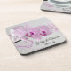 Customize the pretty Pink Orchid Elegance Wedding Cork Coaster Set with the personal names of the bride and groom and specific marriage ceremony date. This elegant custom flowery nuptial cork coaster set features a botanical photograph of a pink phalaenopsis orchid flower blossom with a white background and pink swirls.