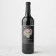 Pink Orchid Floral Skull Personalized Halloween Wine Label