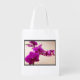 I own a lot of reusable grocery bags, but this one holds its box shape and simply stands up on its own even if there is nothing in it. Its stiffer than your regular reusable bag too, and the material is water resistant. I poured water on the exterior and it didn't penetrate inside to the other side. I'm buying a couple more. Wish I knew how durable these bags were or I would have purchased a few more with my initial order. I also like how it folds and buttons up when not in use, making it easy to put into a handbag or luggage. I haven't used this bag yet, as I purchased it for travel use, like when you're at the airport and need to small sturdy bag to place any airport purchases in, like food, souvenirs etc. I can tell you when you first see this bag, it looks very cheap, but after closer inspection of the material and the seams its a very sturdy reusable bag. I tested it out by putting some really heavy objects inside and I could not observe any stress to the bag at all. Another thing I like about it, is the fact the medium size that this is makes it easy to just carry it in your hand without the bottom of the bag scraping the ground, like most other bags do when you're short. That alone, deserves 5 stars. I just wish there were more colors to choose from! The PDX Airport Carpet printing looks just like the photo, and using this bag during travel might be a conversation piece when/if a native from Oregon happens to see it.