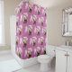 Pink shower curtain with pink, gold and teal Catalina Orchids.