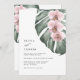 Pink Orchids on Monstera Tropical Paradise Wedding Invitation