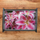 Serve up a meal on this attractive, wooden serving tray that features a photo image of gorgeous, pink Oriental Lily flowers. A lovely, floral design! Select from natural or black tray along with tray size. Large tray style best accommodates standard size dinner plate.