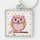 Cute fat little pink owl on branch. Sweet girly-girl key chain.Created in part with graphics by Thaty Borges.