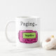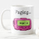 A fun personalized pager mug for anyone who lives by alerts, call shifts, and being reachable. In colorful pink, the pager illustration features a bright green screen where the name can be customized. A lighthearted gift for healthcare teams, medical imaging staff, residents, students, and anyone on call in other fields too. Above the pager, it says “Paging…”, and the screen can be personalized with a name.