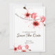 Watercolor painted modern pink and rose cherry blossom Asian inspired save the date card for your wedding suite. Elegant with modern handwritten style script curved type.