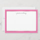 Our stylish personalized flat note cards have a pink paisley background with pink foil border around the white text area with your name or choice of personalization at the top in charcoal gray script lettering. Cards reverse side features a pink horizontal and white stripes background.