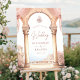 Amaze your guests with this elegant Islamic wedding welcome sign featuring beautiful curtains, majestic arches and modern typography.