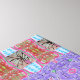 Pretty pink palm tree-tops beautify this abstract work of art designed as a result of mixed media, along with colors of lavender, blue and red.
