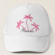 Cute Hawaii baseball cap with pink palm trees and some sparkle and glitter effect in the design. The template area can be personalized with your favorite tropical destination.
