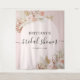 Elegant bohemian bridal shower tapestry featuring a dusty pink background with a floral arch feature, watercolor desert dried palm leaves, pampas grass, and a modern text template that is easy to personalize.